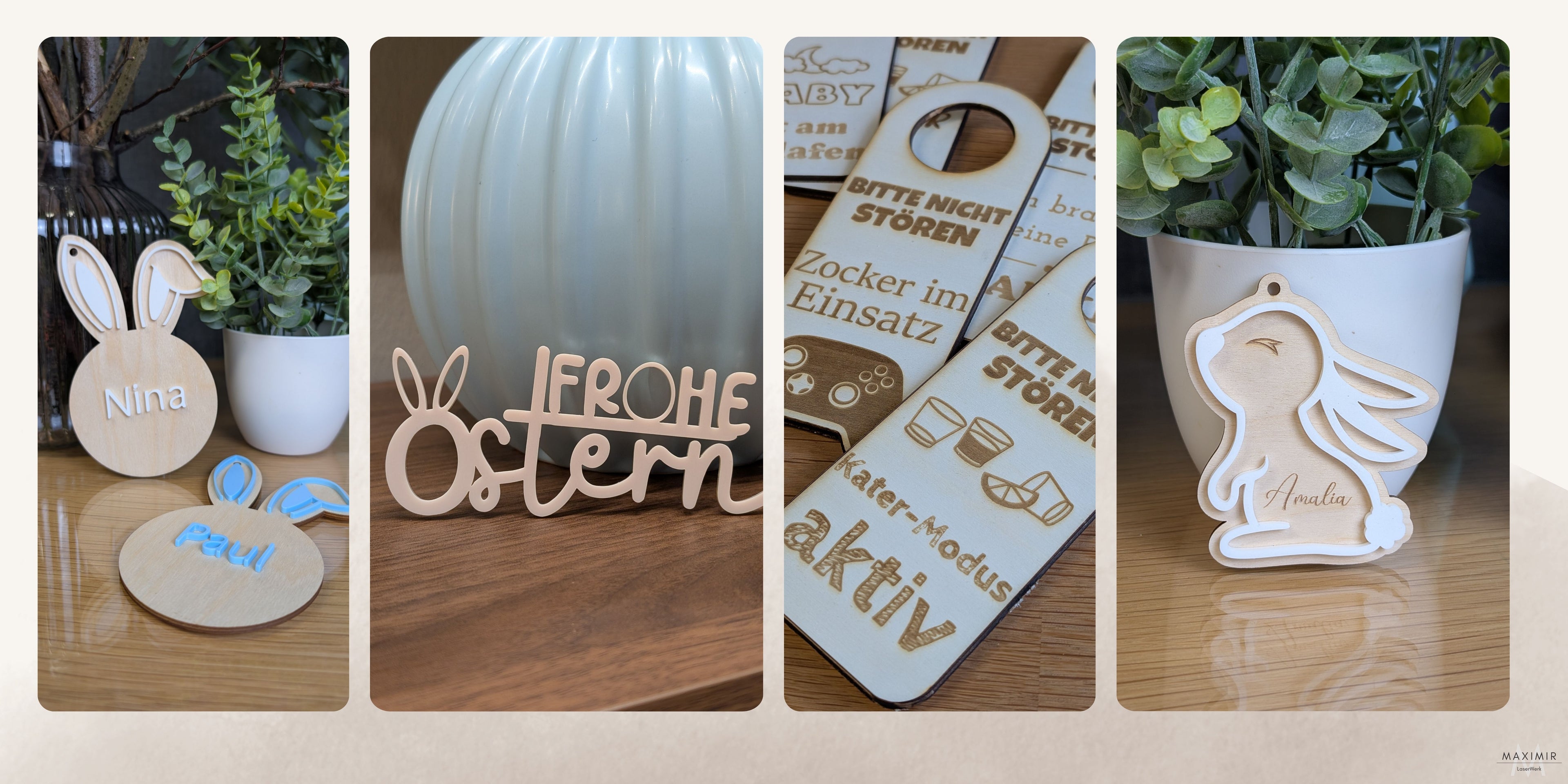 Im Maximir-LaserWerk trifft moderne Technik auf echte Leidenschaft. Wir fertige jedes Stück direkt hier in Gütersloh – egal ob personalisierte Geschenke zur Geburt, individuelle Festtagdeko oder präzise Zuschnitte für Firmen. Bei uns bekommst du keine Massenware, sondern echte Qualität, die man fühlt. Hast du einen Sonderwunsch? Schreib uns!